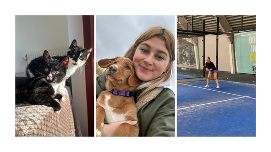 Ook buiten mijn werk zit ik niet stil. Ik woon in Leidsche Rijn samen met mijn vriend en mijn tweede thuis is de padelbaan, waar ik wekelijks train en regelmatig meedoe aan wedstrijden en toernooien. De rest van mijn tijd gaat op aan onze gezellige dierenboel thuis: een drukke, ondeugende puppy van zes maanden en twee jonge kittens uit het asiel. Saai is het bij mij in ieder geval nooit.