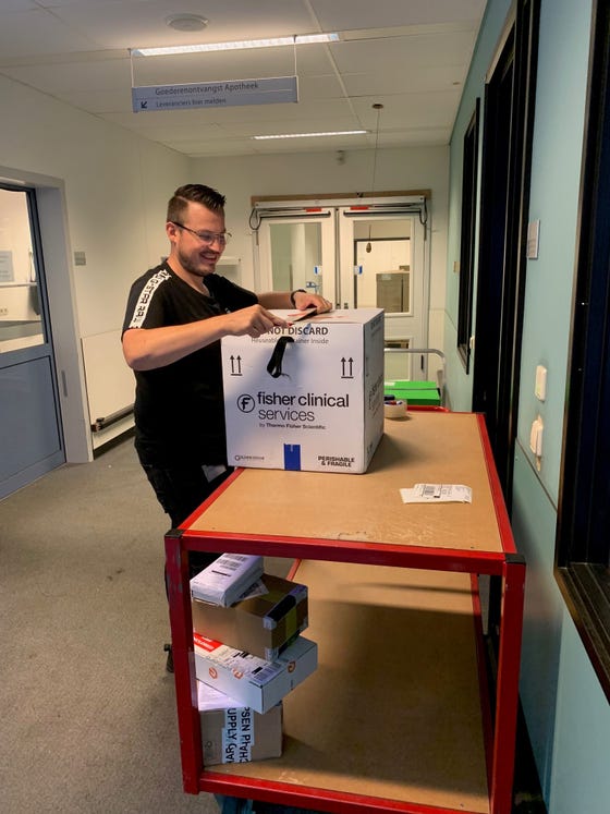Bij hem komt de medicatie voor onderzoek binnen en hij zorgt ervoor dat alle medicijnen gecontroleerd en geëtiketteerd worden volgens de juiste norm. Belangrijk werk, want het gaat om medicatie die niet zomaar te verkrijgen is.